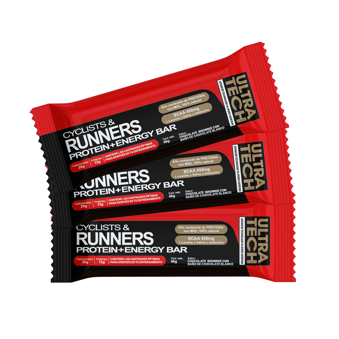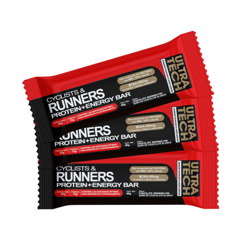 Cyclists & Runners Protein+Energy Bar 46 g – Chocolate brownie con baño de chocolate blanco – Caja x 12 unidades